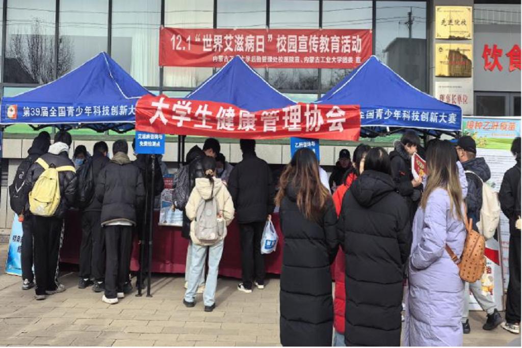 2025年12月1日是第38个“世界艾滋病日”,为进一步增强师生防艾抗艾意识,提升自我保护能力,营造健康和谐的校园环境,校医院联合校团委、内蒙古工业大学委员会、校学生会(研究生会),在两校区同步举办了以“社会共治、守正创新、终结艾滋”为主题的防艾宣传教育活动,副校长王利明及相关部门负责人参加宣传活动。
